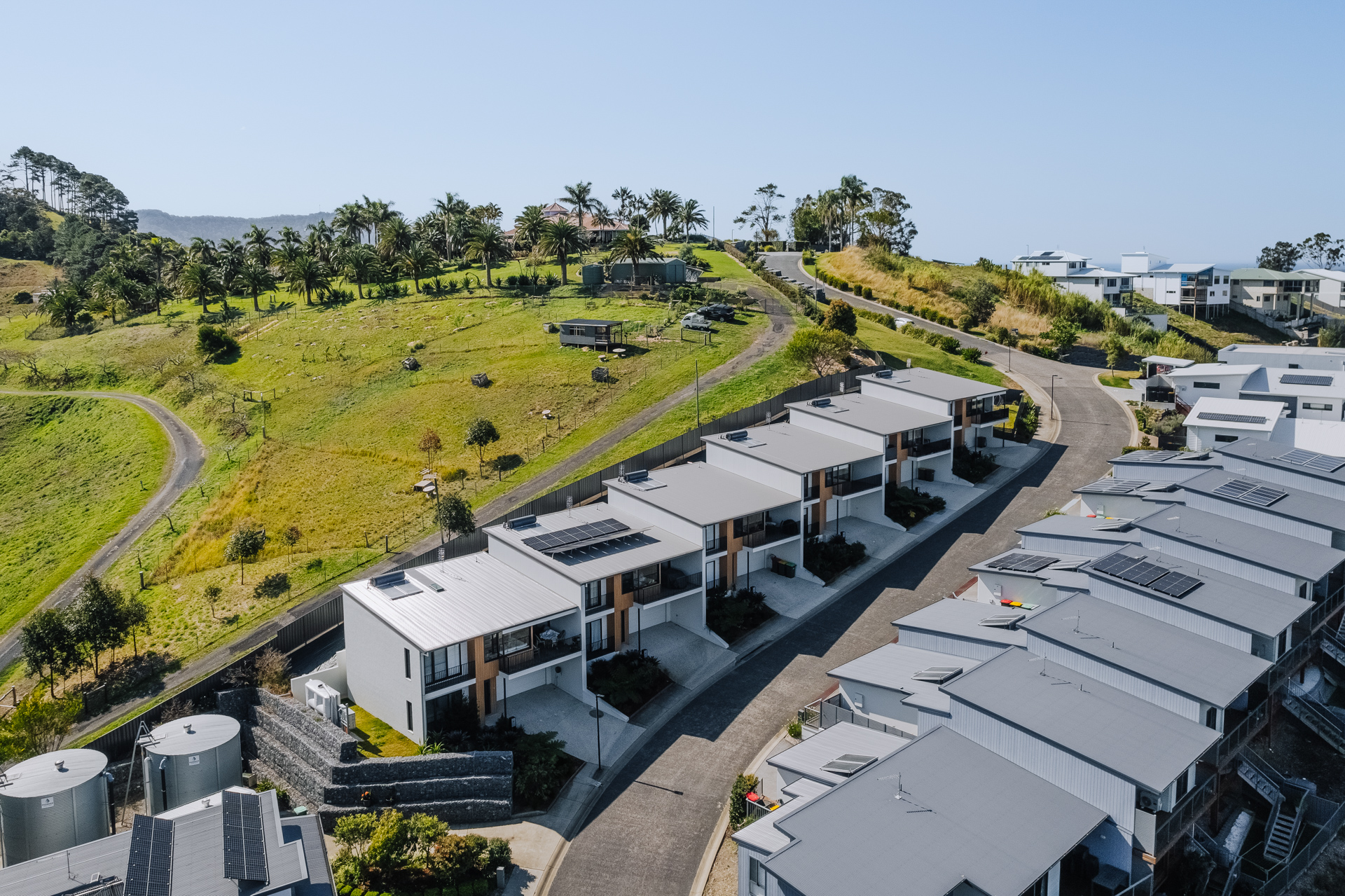 6 large townhouses all with elevated ocean views. Difficult step and rocky site. This project required extensive rock excavation, retaining and terracing.